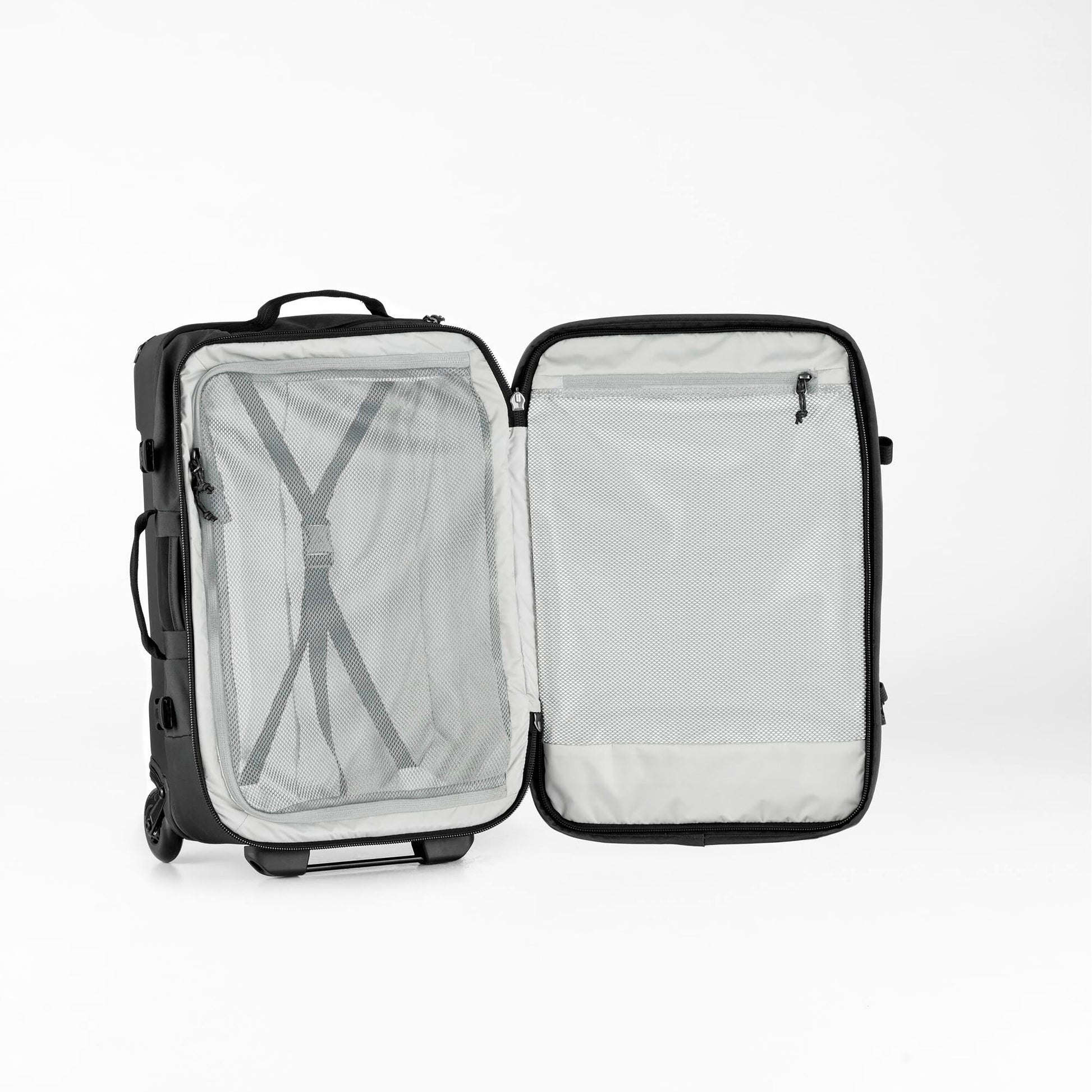 Färden Roller 35 is the perfect travelling companion for air, land or sea. Carry-on size with a quick-access laptop pocket in mesh inside. Made from recycled polyamide with laminate. The front is lightly padded to protect contents and the outside pocket at the top has dedicated space so items won’t get squashed if the bag is full. Compression straps on the outside and inside to hold contents in place.